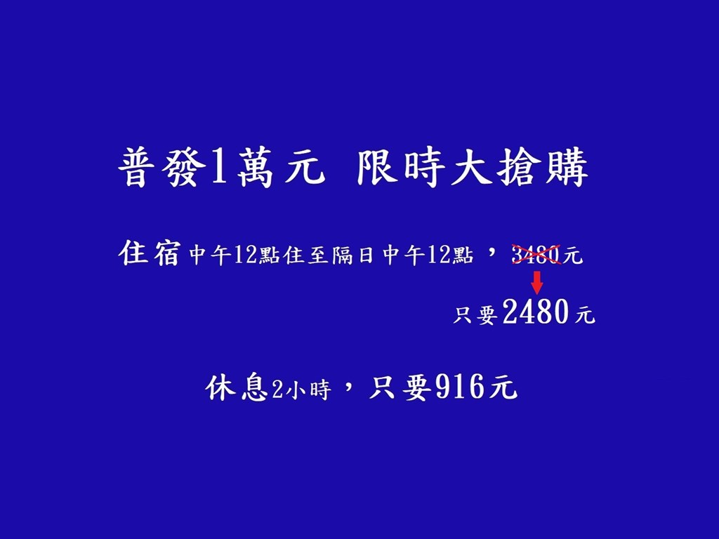 秋季住宿加時不加價專案房價表